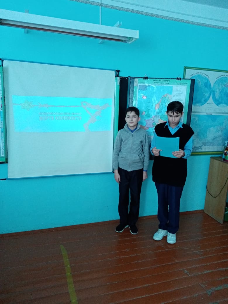 25 января с обучающимися 6 класса был проведен классный час гражданско-патриотической направленности, посвященный Неделе памяти жертв Холокоста. Шестиклассники принимали непосредственное участие в подготовке мероприятия. В своих выступлениях они отразили хронологию трагедии Холокоста, прочитали стихи, вызывающие чувства сопереживания людям разных национальностей, пострадавшим в это трагическое время. Ребят впечатлила видео-экскурсия, подготовленная Историческим парком «Россия – моя история».
