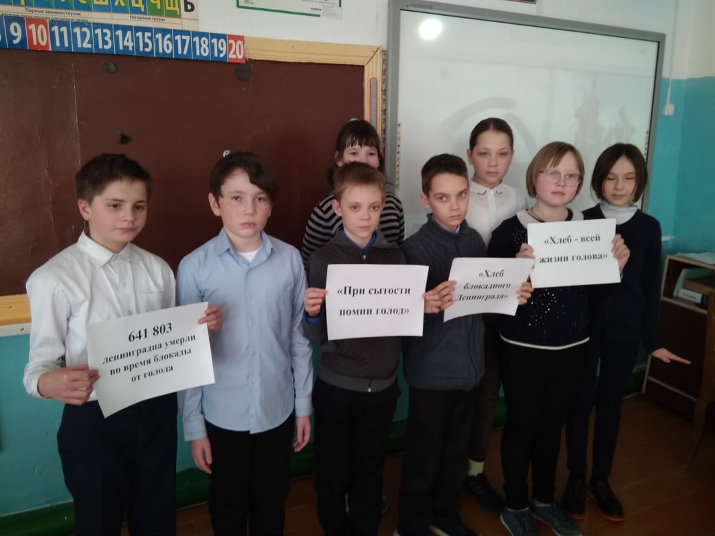 С 17 по 28 января 2022 г. в МАОУ СОШ с.Ермолкино в рамках акции «Блокадный хлеб» прошли классные часы «900 дней мужества» в 1-4 классах, «Хлеб блокадного Ленинграда» в 5-9 классах. Обучающиеся познакомились с историческими фактами времен Великой Отечественной войны, с условиями жизни в блокадном Ленинграде. Узнали про хлеб, который там пекли, про хлебные карточки и про то, что, несмотря на голод и лишения, ленинградцы не утратили глубокую человечность, доверие и уважение друг к другу. Каждое мероприятие завершилось минутой молчания в память о погибших в Ленинграде.
