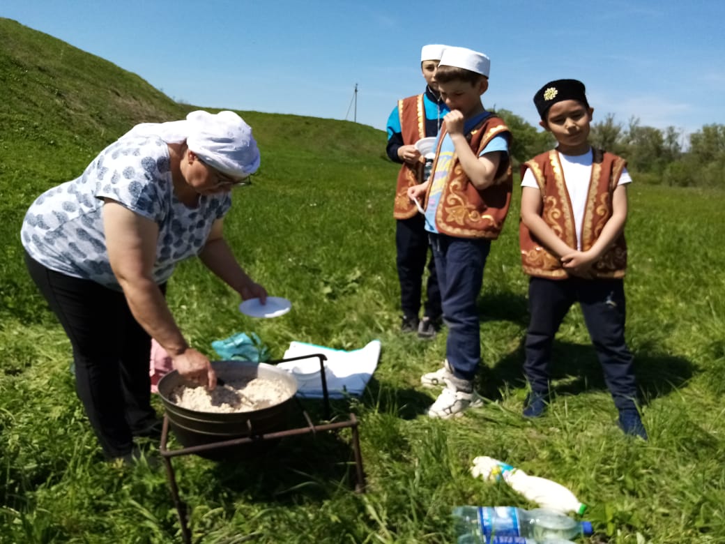Традиционное обрядовое блюдо – каша из злаков варилась на большом казане, рядом кипели самовары. Мамы и бабушки хлопотали возле костра, накрывали стол. А дети в это время принимали участие в народных играх, отгадали загадки про птиц, соревновались. Они показывали свое мастерство, талант и ловкость. После веселых игр всех пригласили отведать праздничной каши. Предложили вкусный чай из самовара. Остатки каши с пожеланием всем мира, добра и здоровья оставили для птиц. Расходились с праздника слегка уставшие, но очень довольные. Праздник организовали совместно библиотекарь Ермолкинской поселенческой библиотеки Сания Наиловна Архипова и учитель башкирского языка и литературы Асма Ахтареева. Неоценимую помощь в проведении мероприятия оказали жители села Кагирова Ильзира, Фахрутдинова Лира, Кагирова Карима, Ахметшина Рашида и другие. За что мы очень благодарны всем.