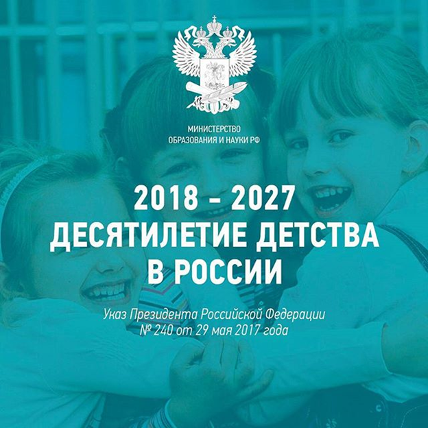 "В целях совершенствования государственной политики в сфере защиты детства, учитывая результаты, достигнутые в ходе реализации Национальной стратегии действий в интересах детей на 2012-2017 года, постановляю: объявить 2018-2027 годы в Российской Федерации Десятилетием детства".