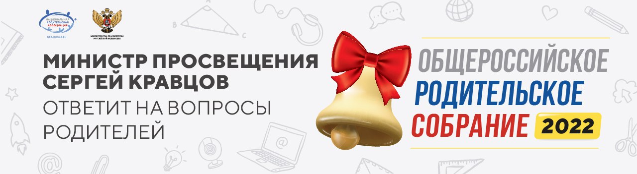 31 августа 2022 года в 10.30 (по московскому времени) состоится IX Общероссийское родительское собрание, в ходе которого Министр просвещения Российской Федерации Кравцов С.С. ответит на вопросы родителей школьников, поступившие на сайт и в официальные сообщества социальных сетей Минпросвещения России.