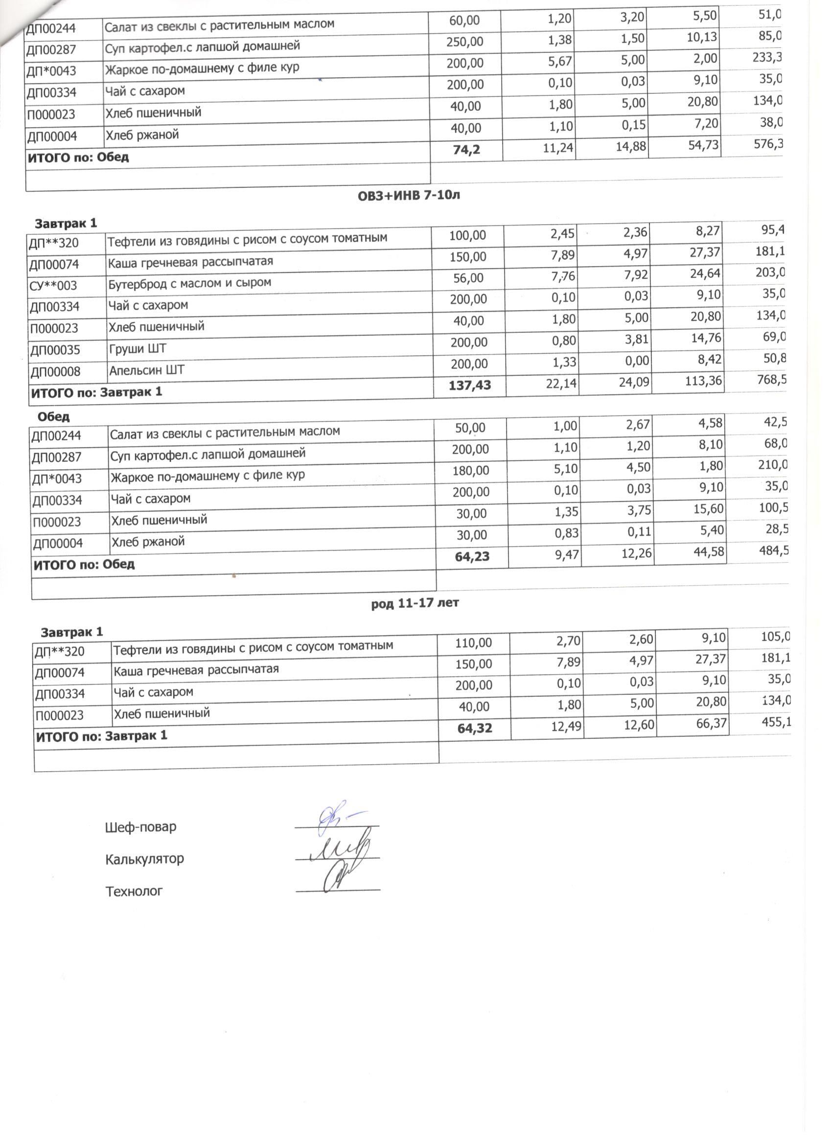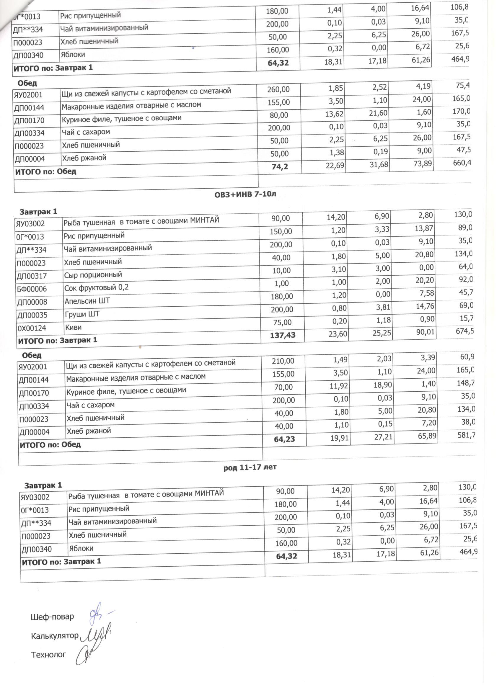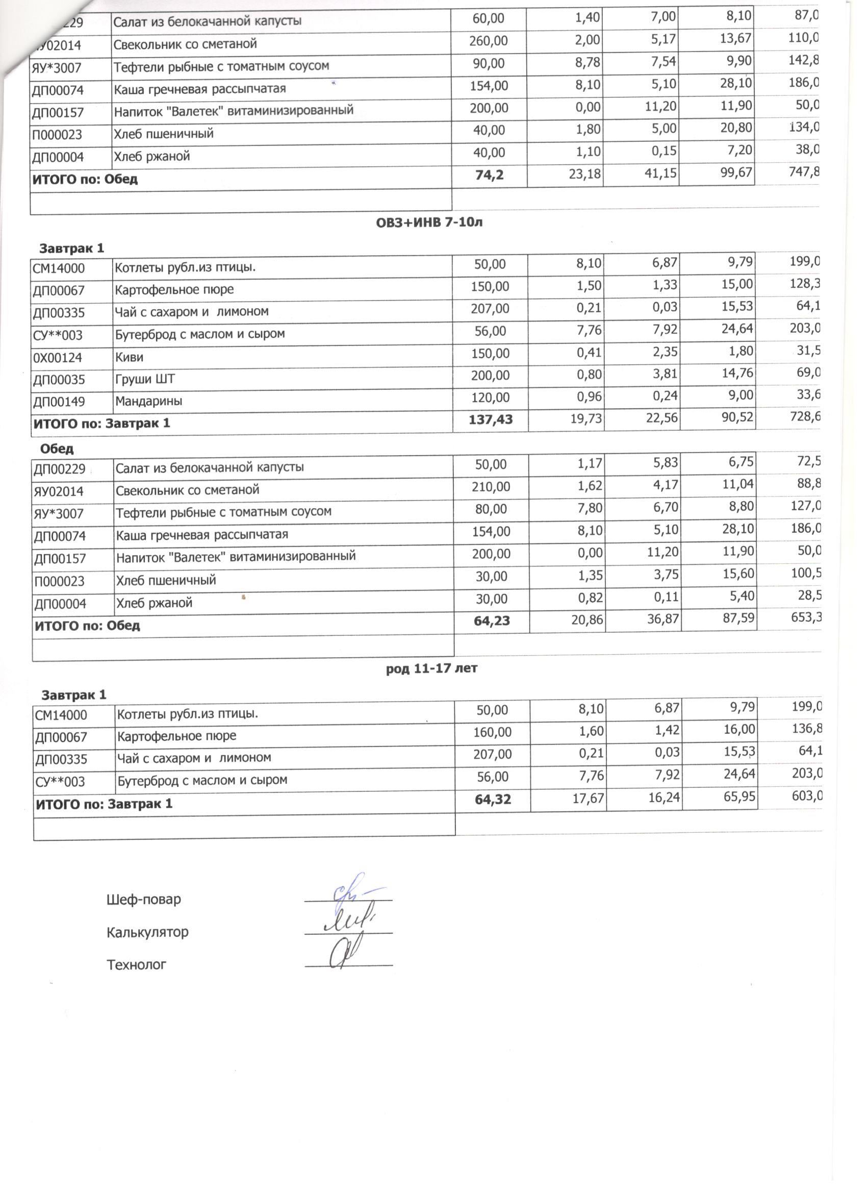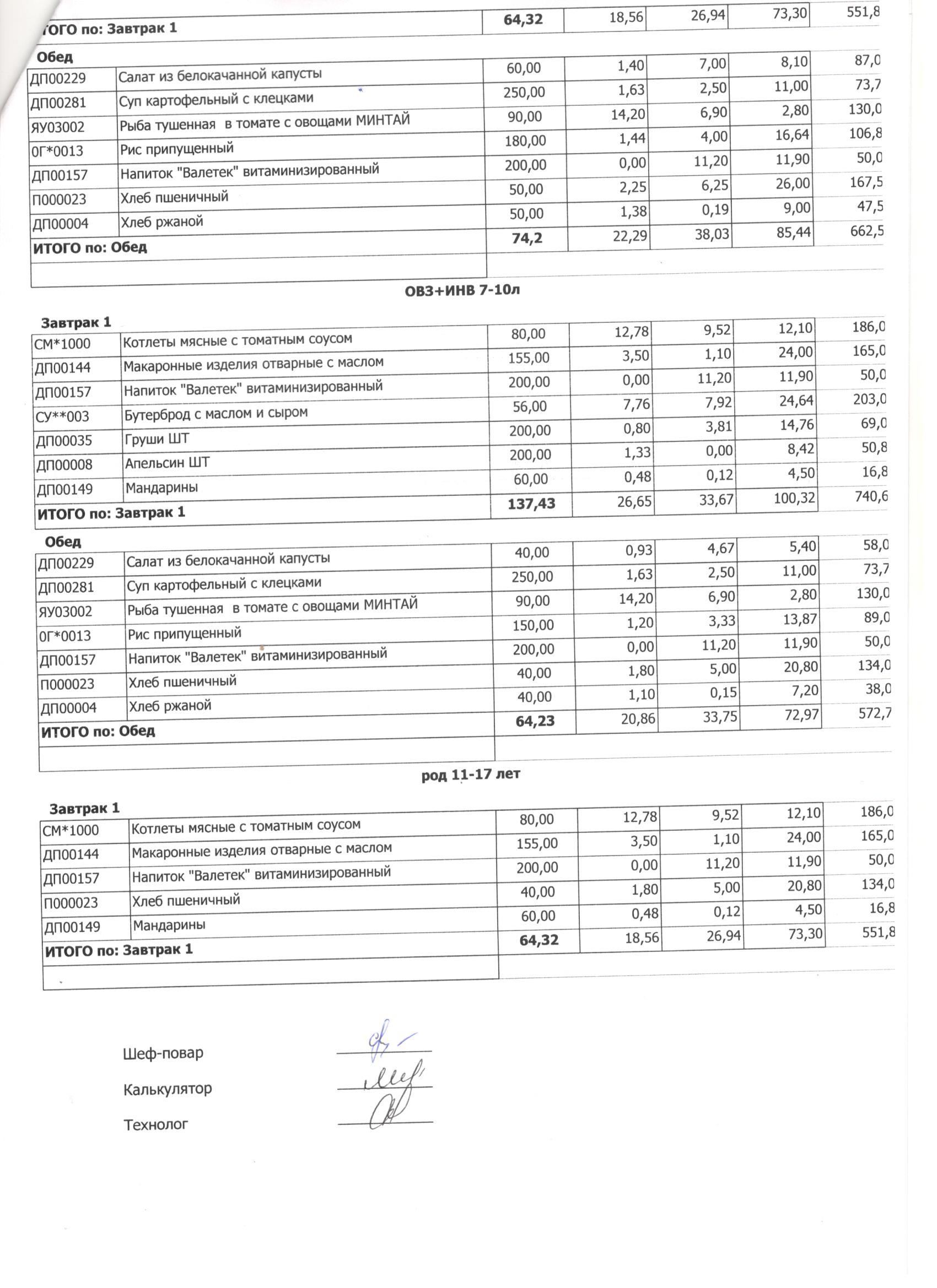 Меню ежедневного горячего питания с фотографиями блюд
