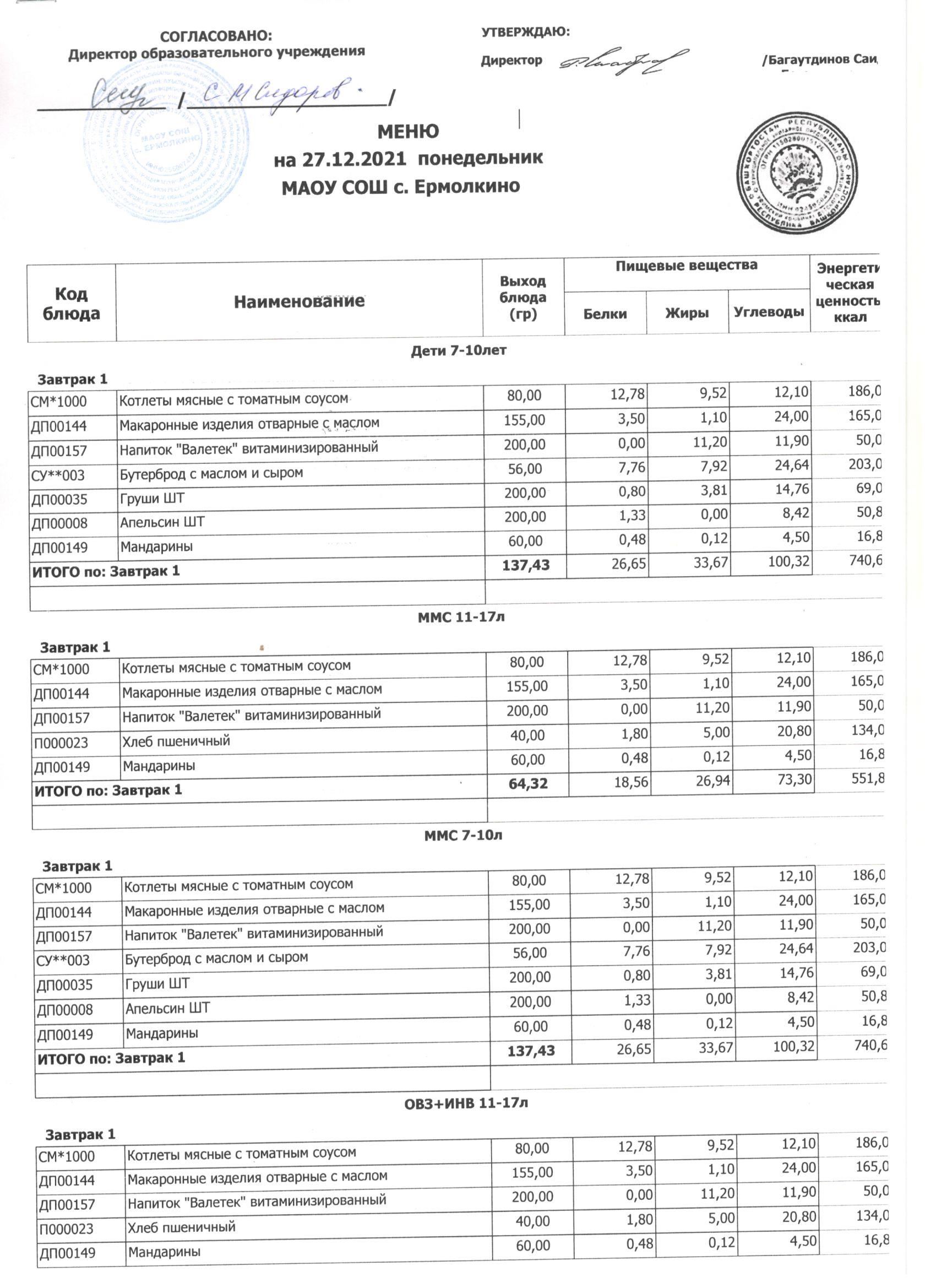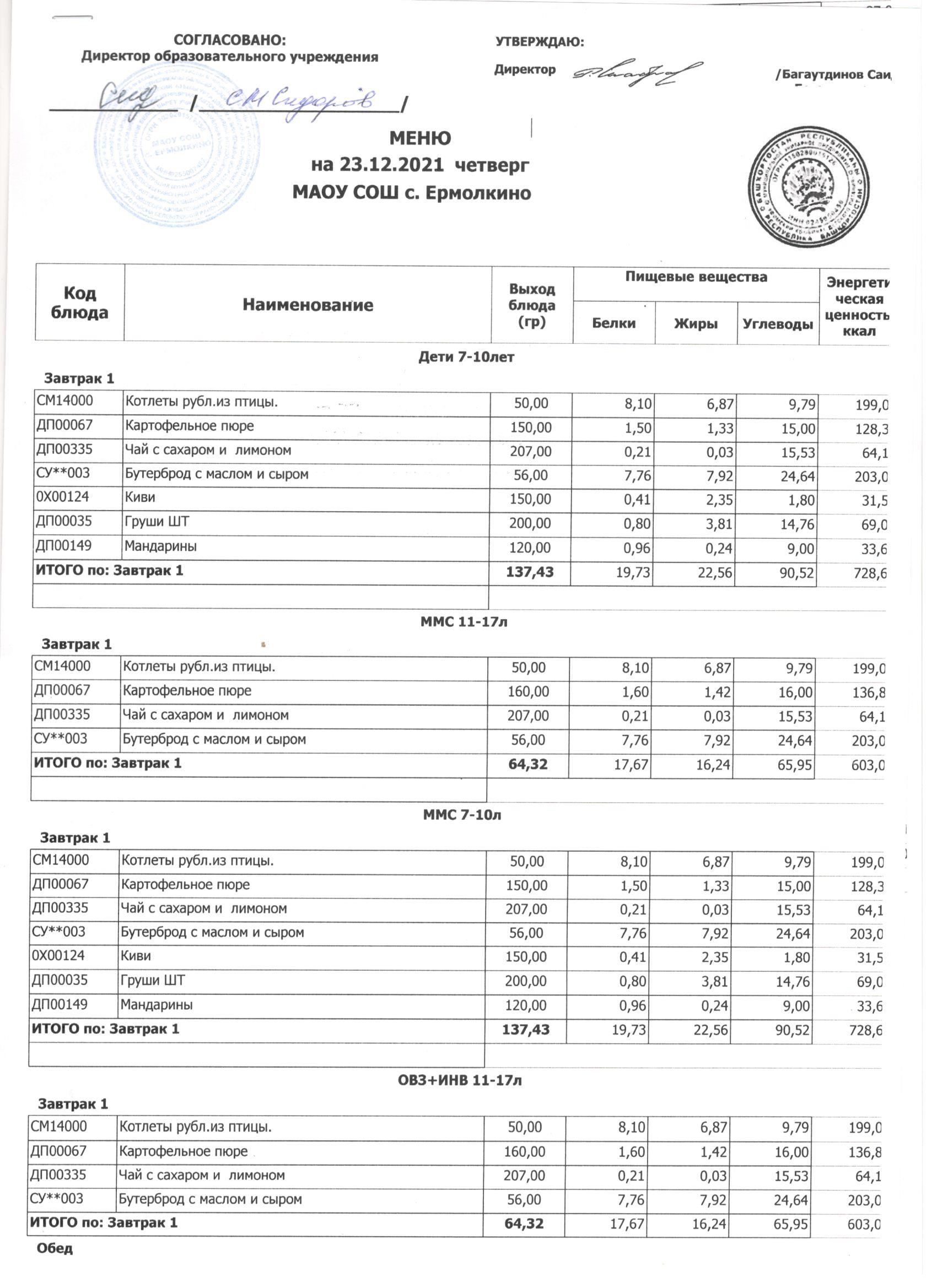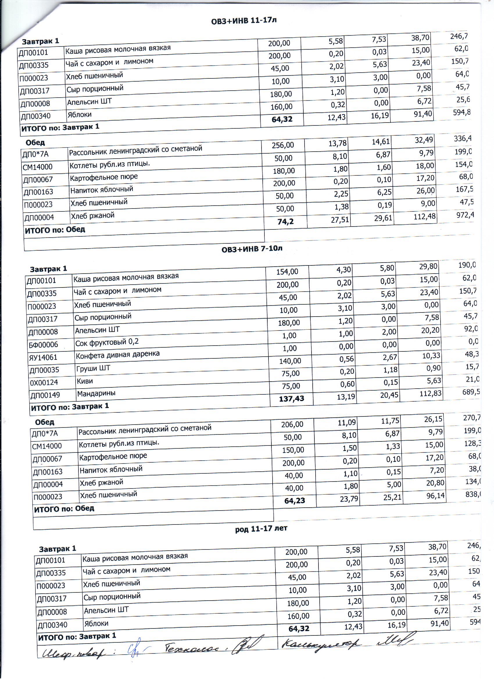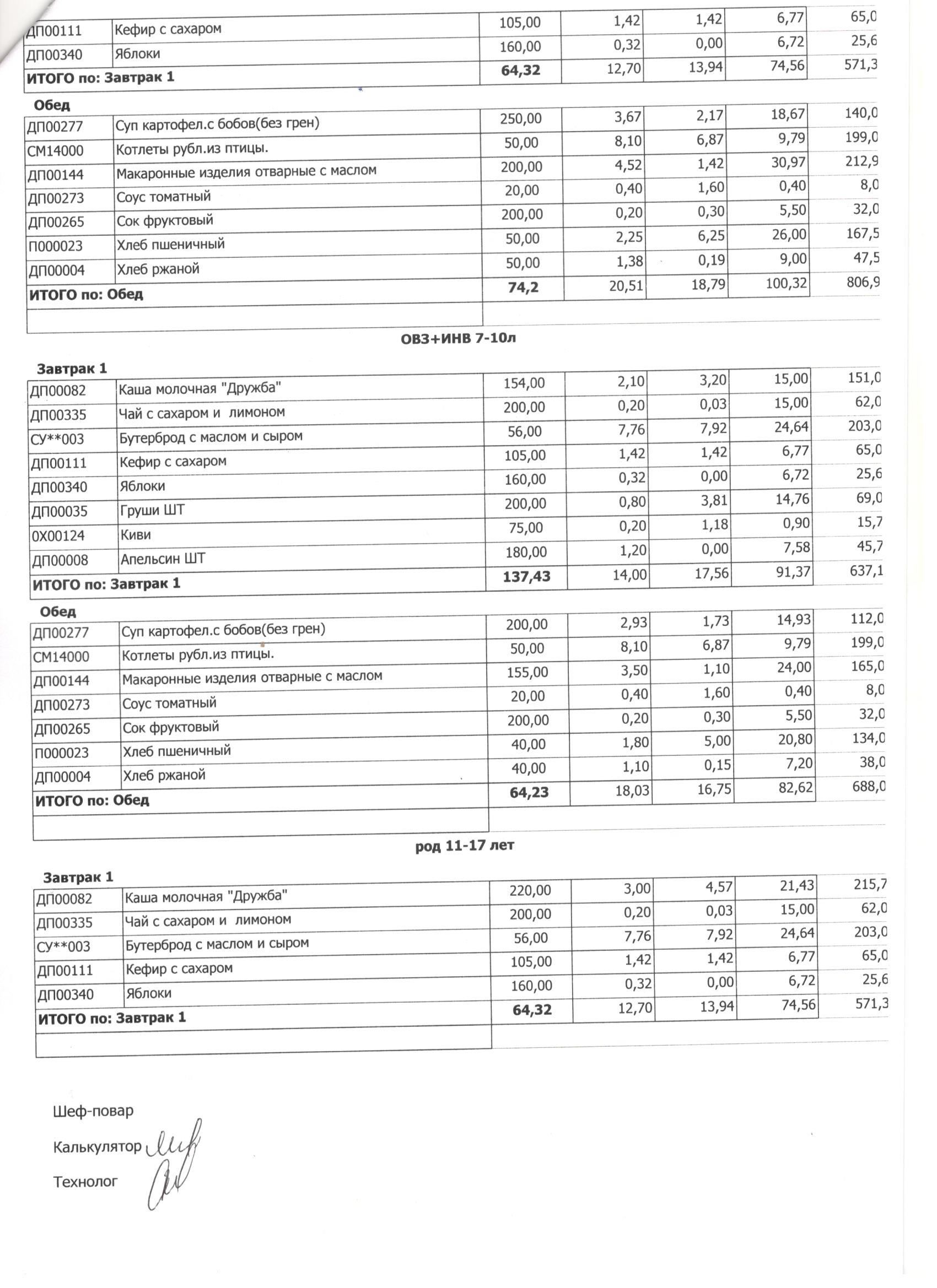 Меню ежедневного горячего питания с фотографиями блюд