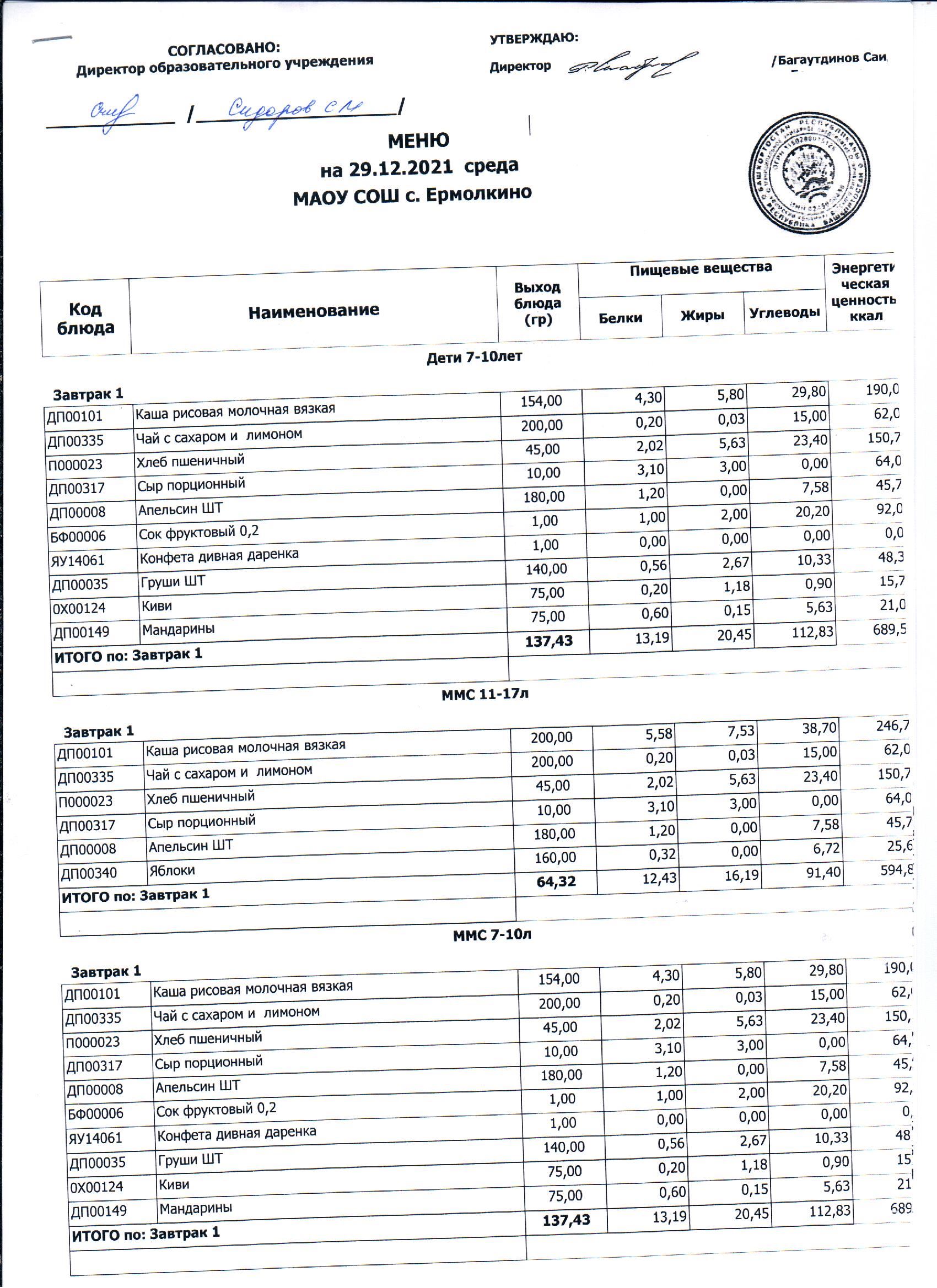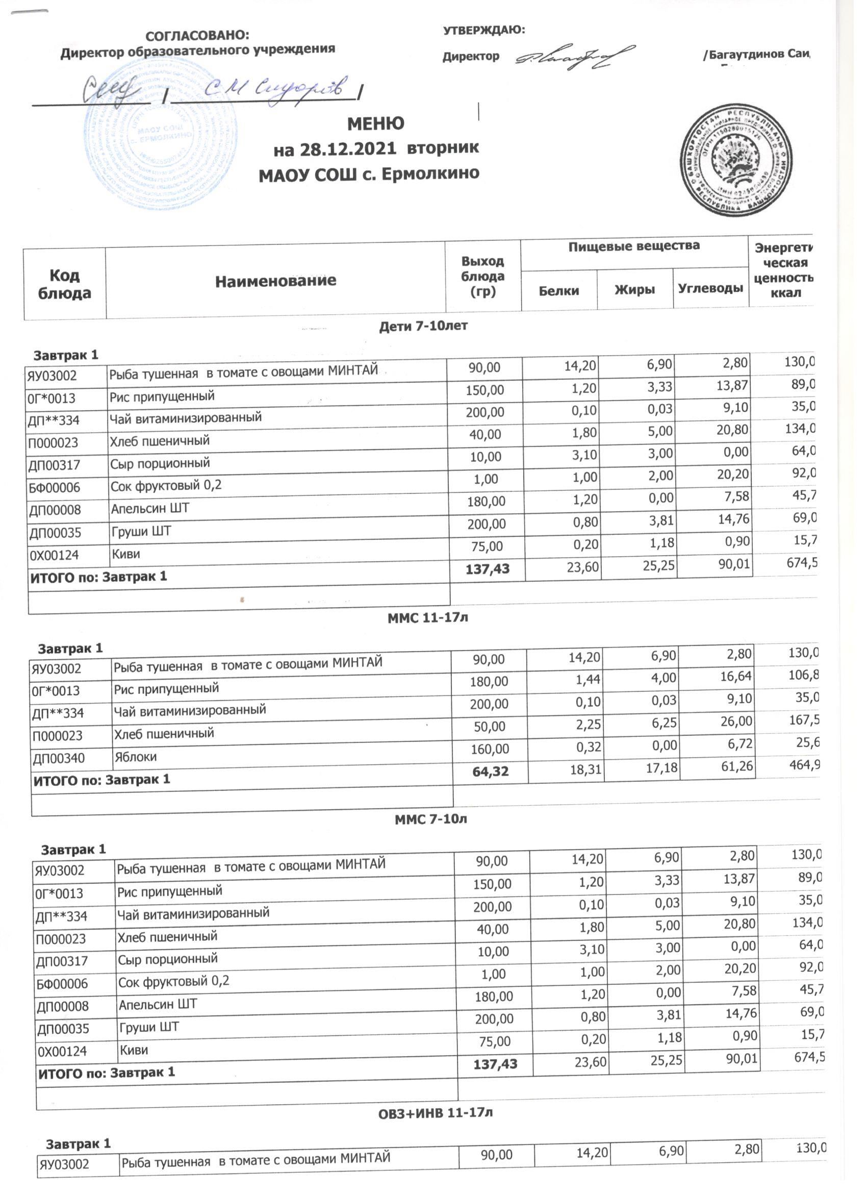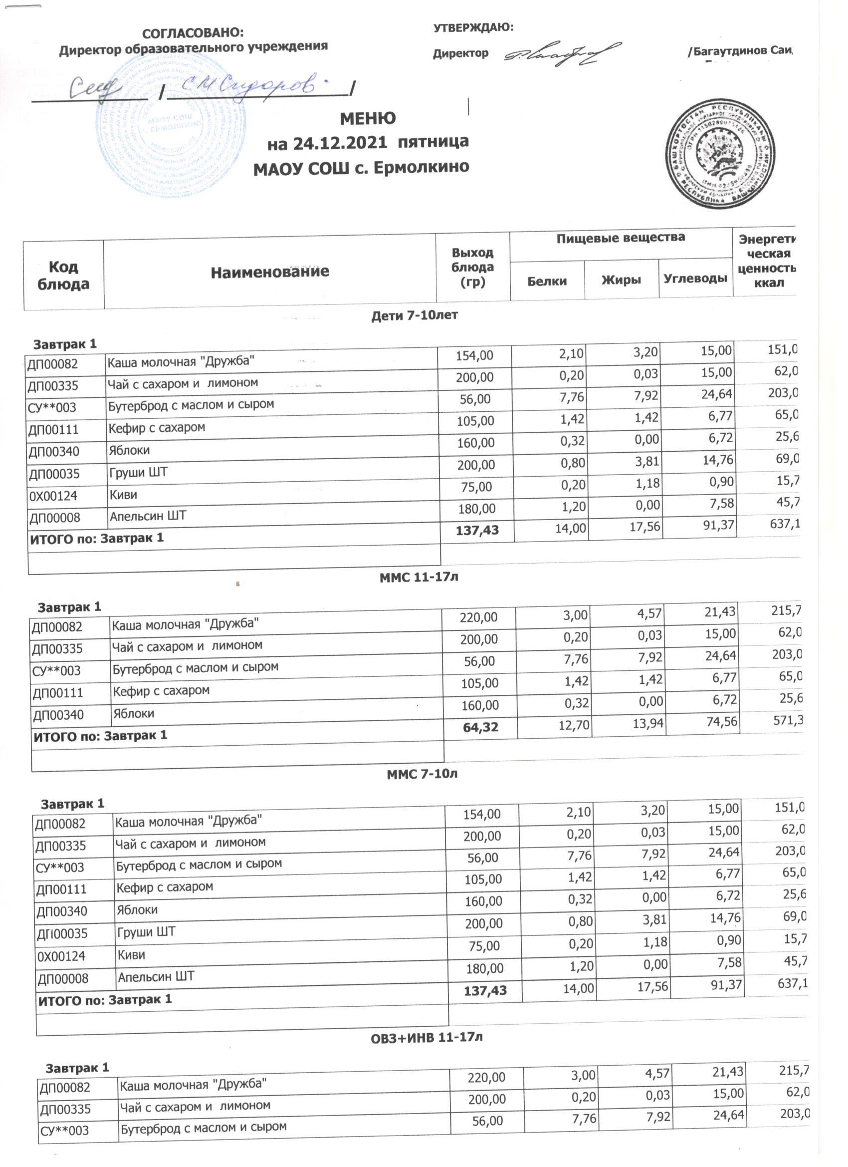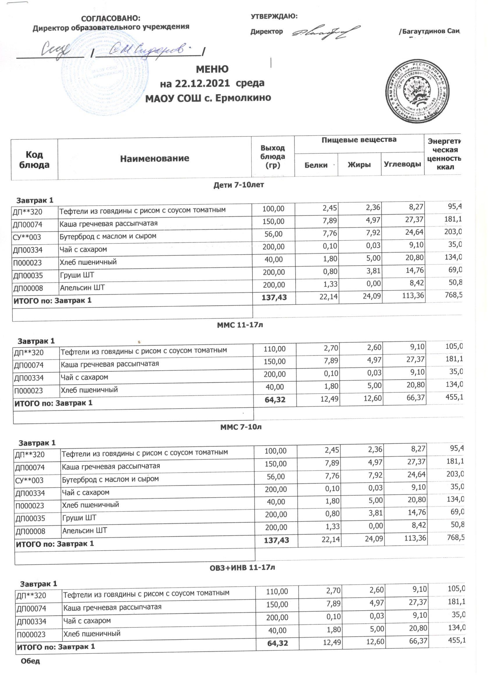 Меню ежедневного горячего питания с фотографиями блюд