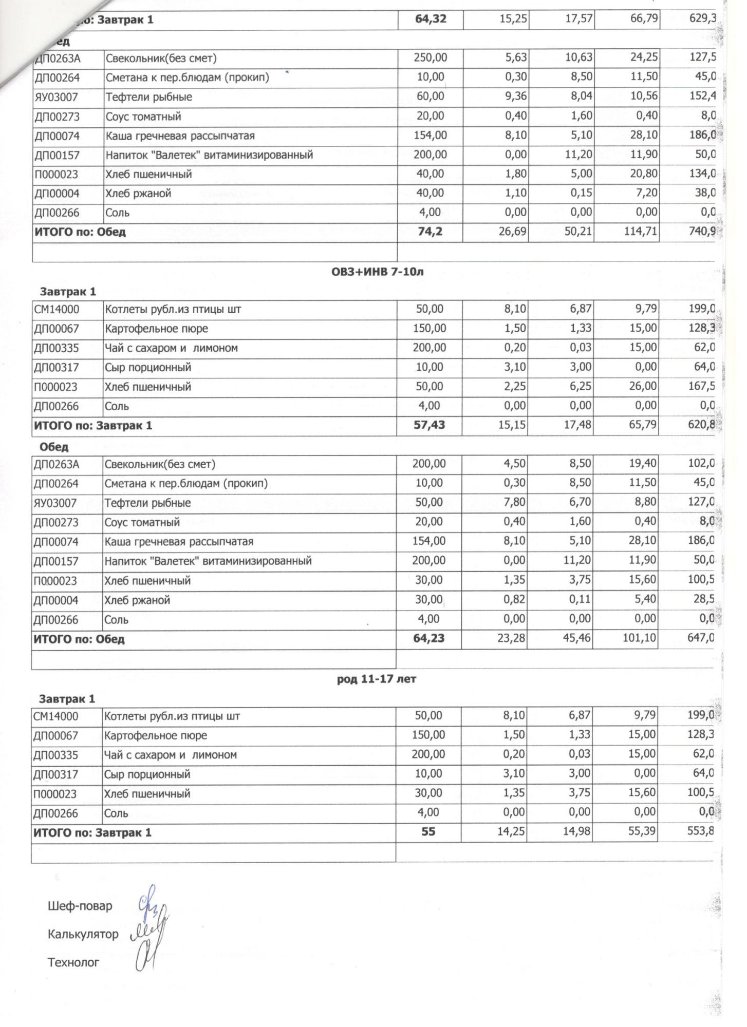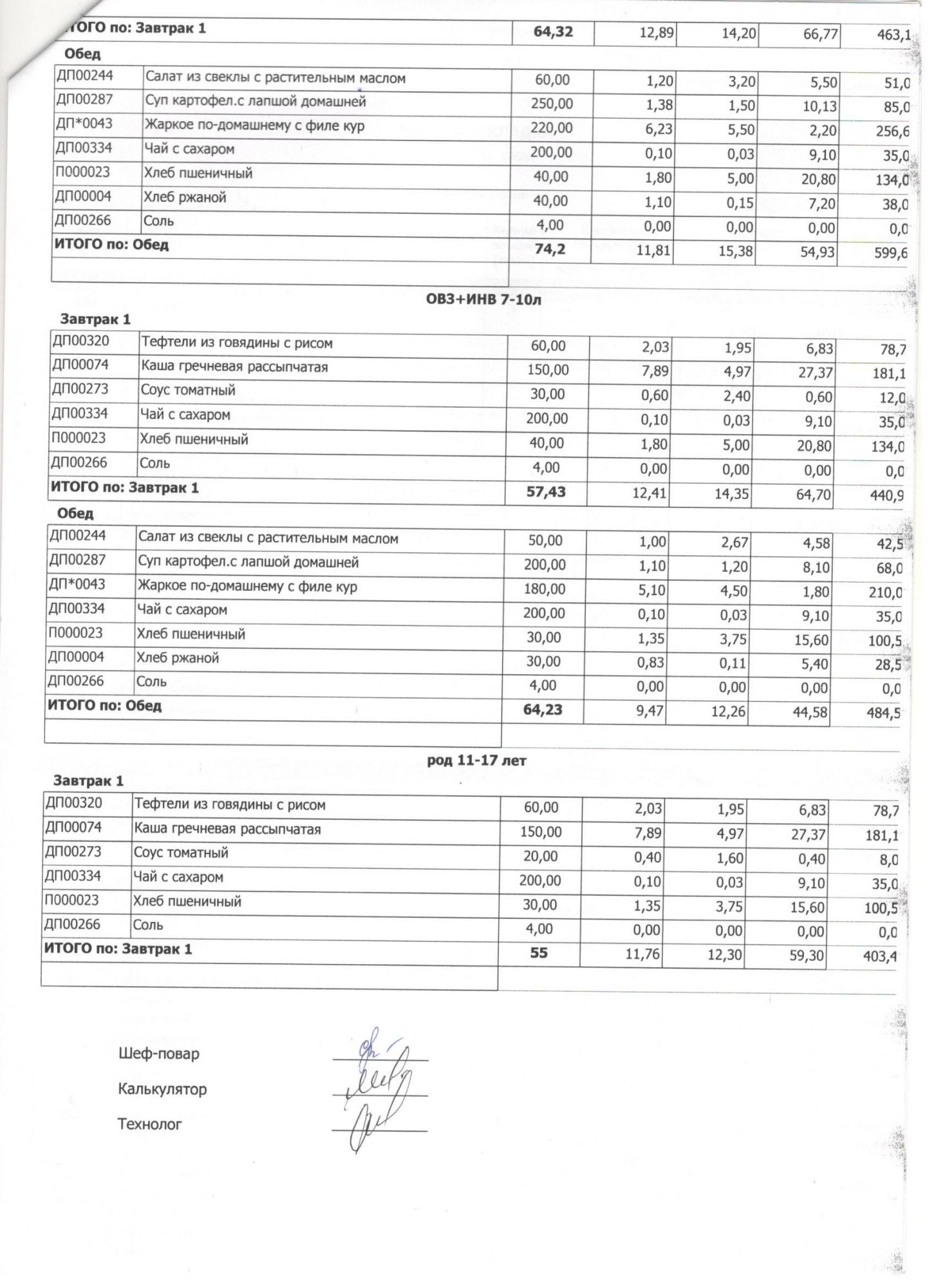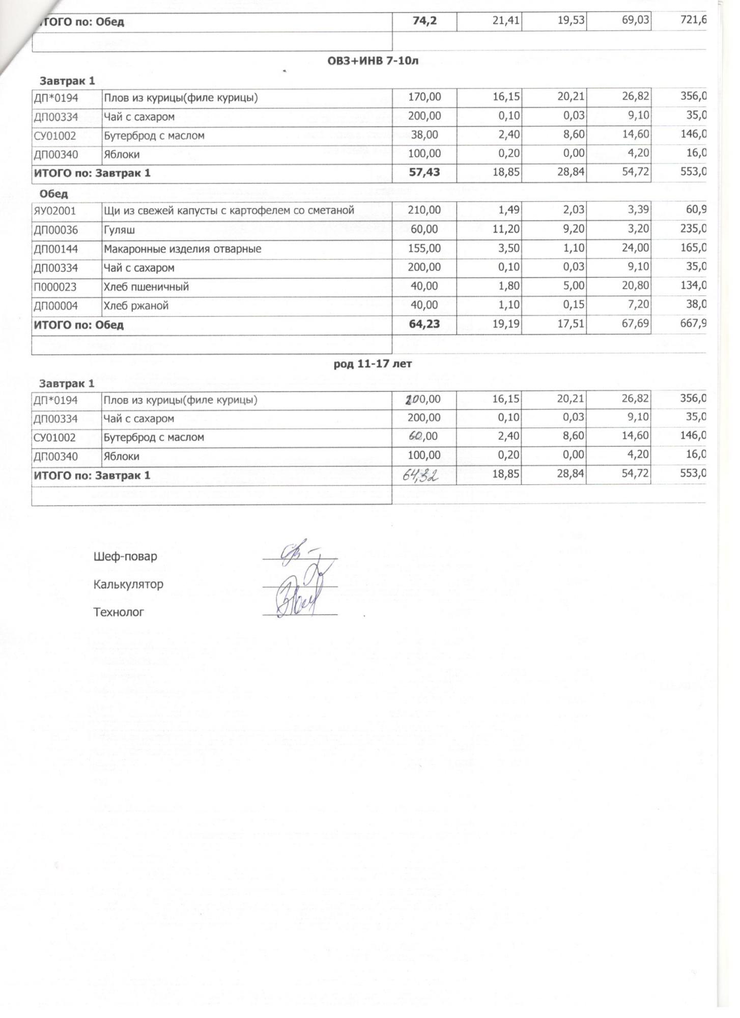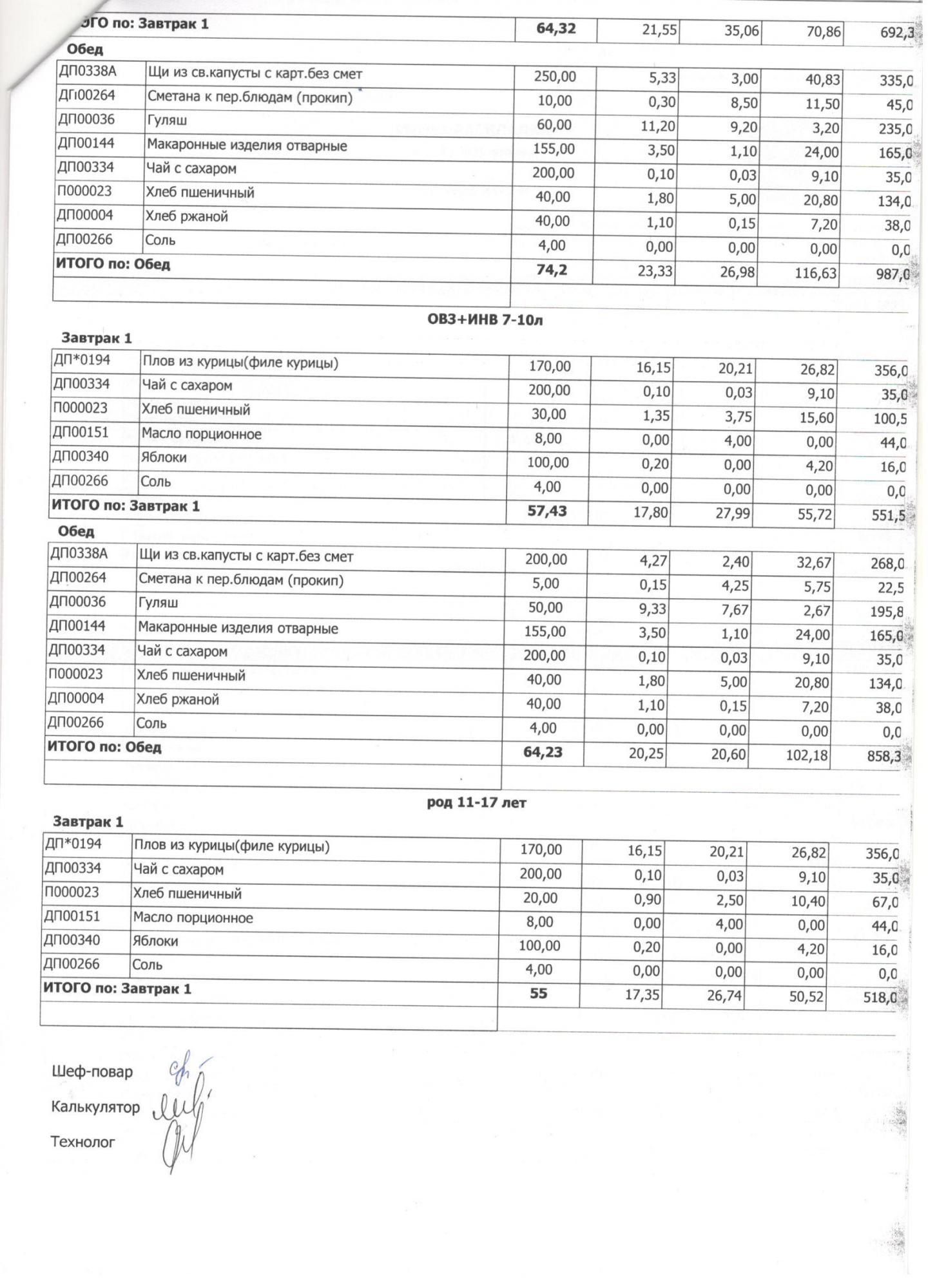 Меню ежедневного горячего питания с фотографиями блюд
