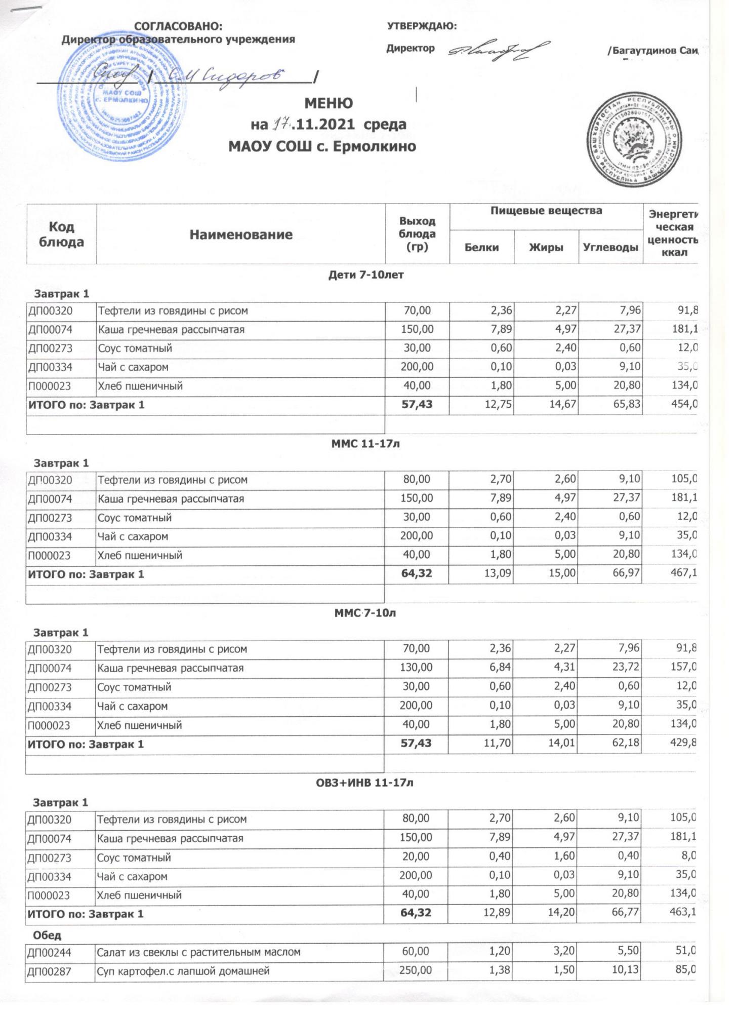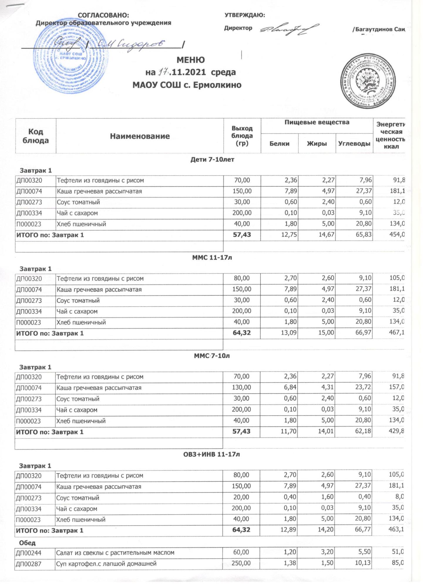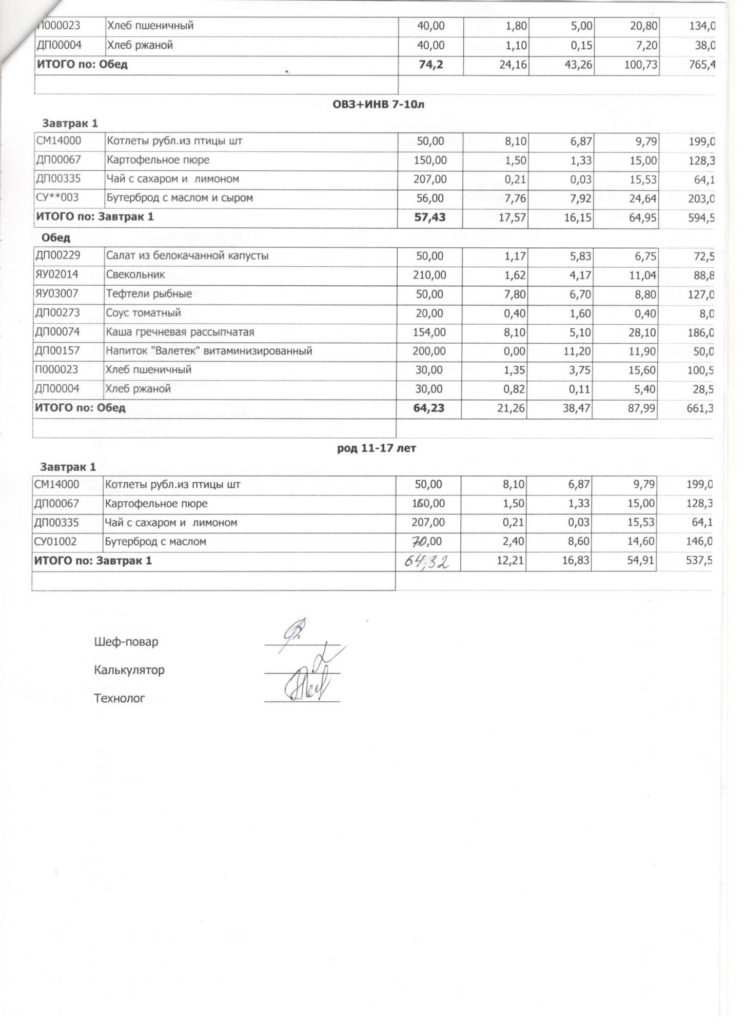 Меню ежедневного горячего питания с фотографиями блюд