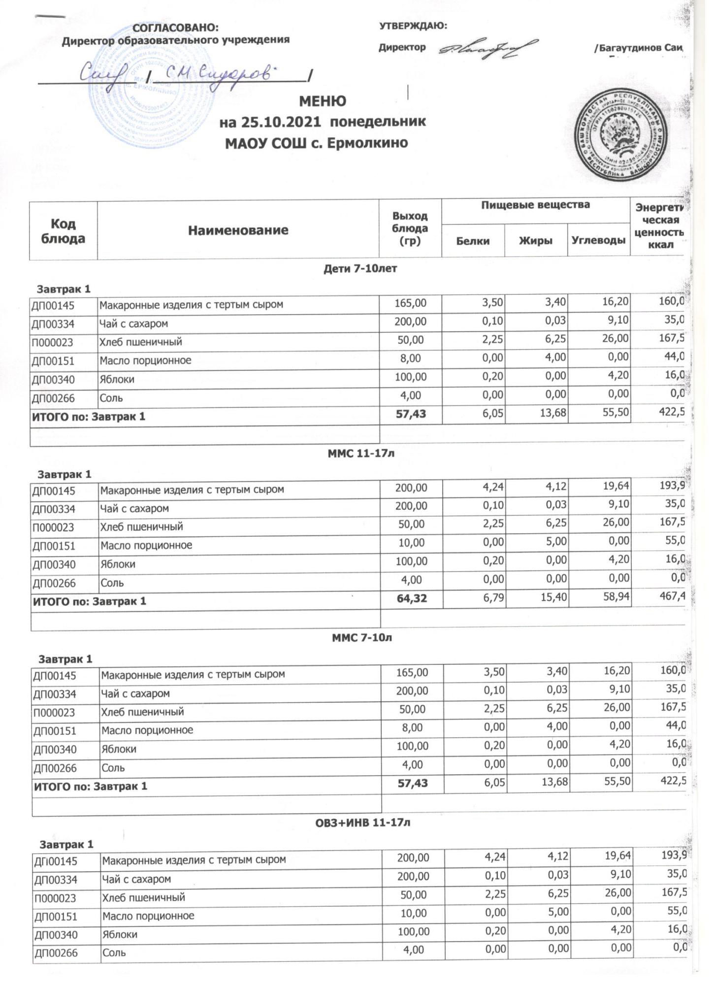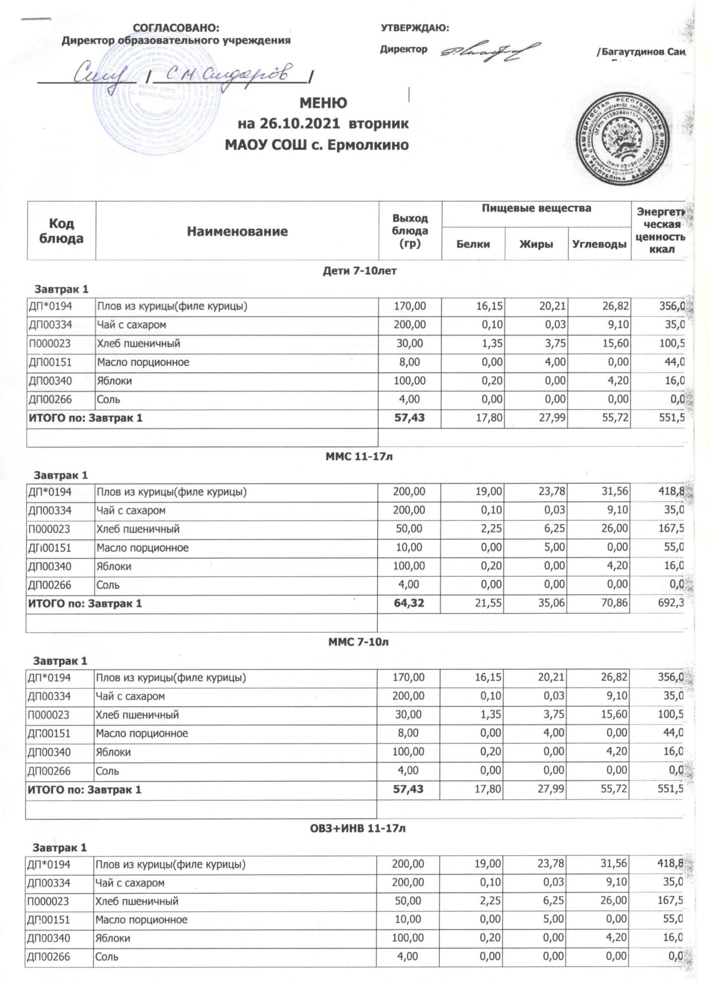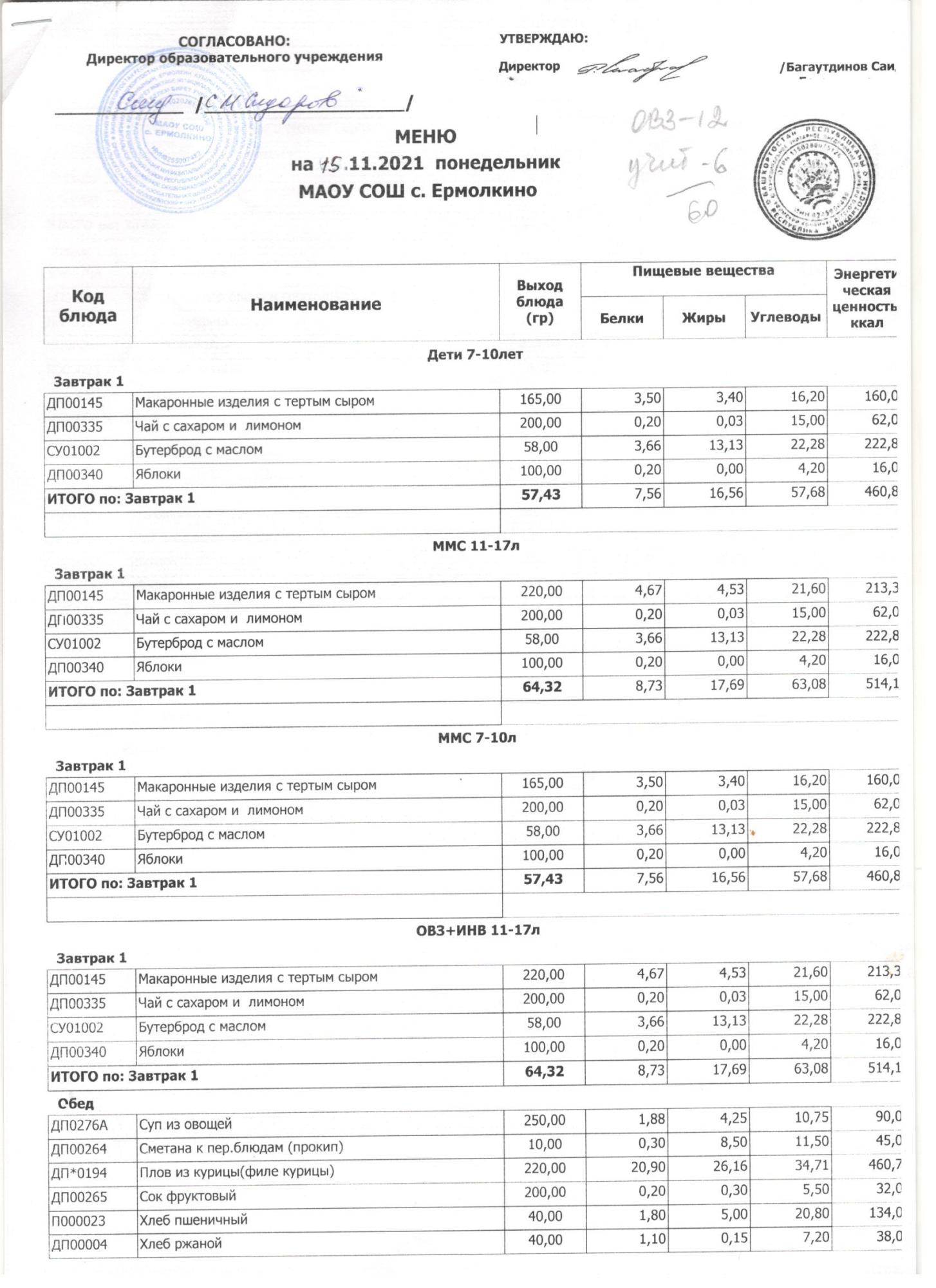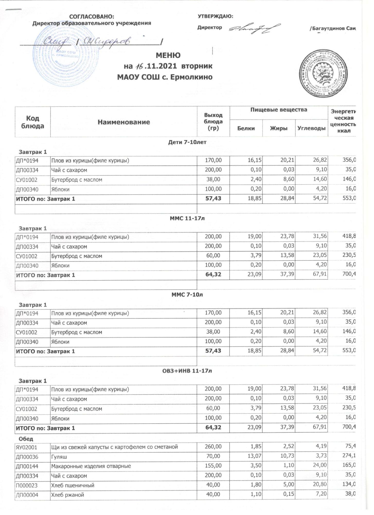 Меню ежедневного горячего питания с фотографиями блюд