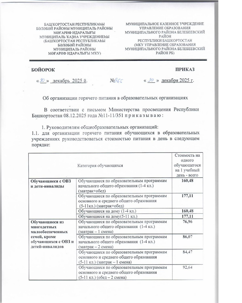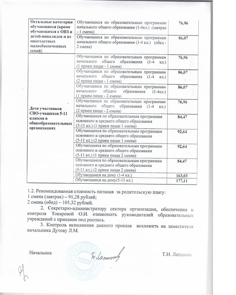 Размер обеспечения горячего питания обучающихся льготных категорий. Приказы